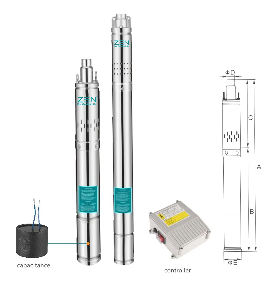 En stock, la bomba sumergible 2/3QGD para pozos profundos está lista para entrega inmediata, brindando acceso rápido y conveniente a soluciones de bombeo de alta calidad. Identificador* 2 kilogramos*2: Diámetro del pozo: 52 mm (2")* QG: Nombre de la bomba*D: Motor monofásico (trifásico sin D)* 1: Capacidad (m³/h)* 60: presión del agua (m)* 0,25: Potencia del motor (KW)
