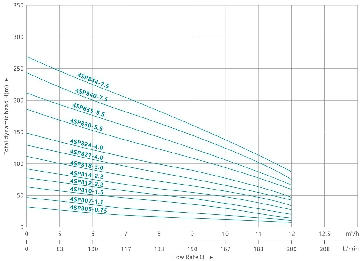 | 4SP255-3.0 | 3.0 | 4.0 | 336 | 312 | 292 | 275 | 253 | 220 | 182 | 116 | 80 | 8 | ||