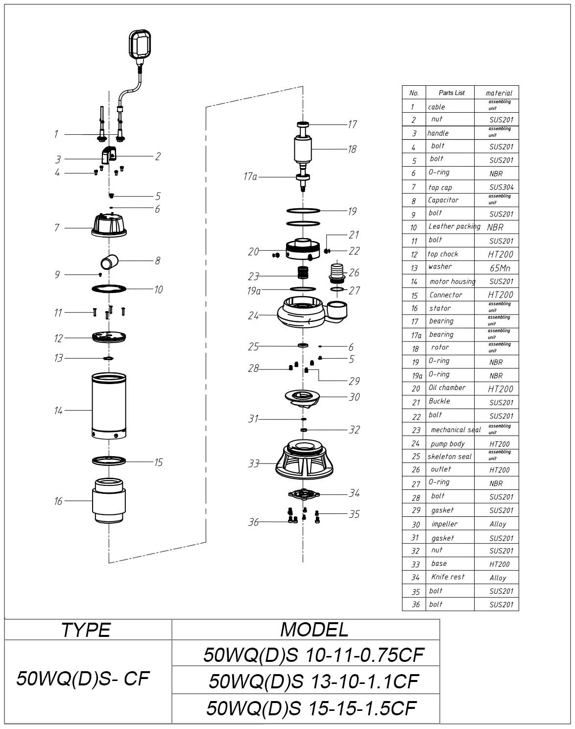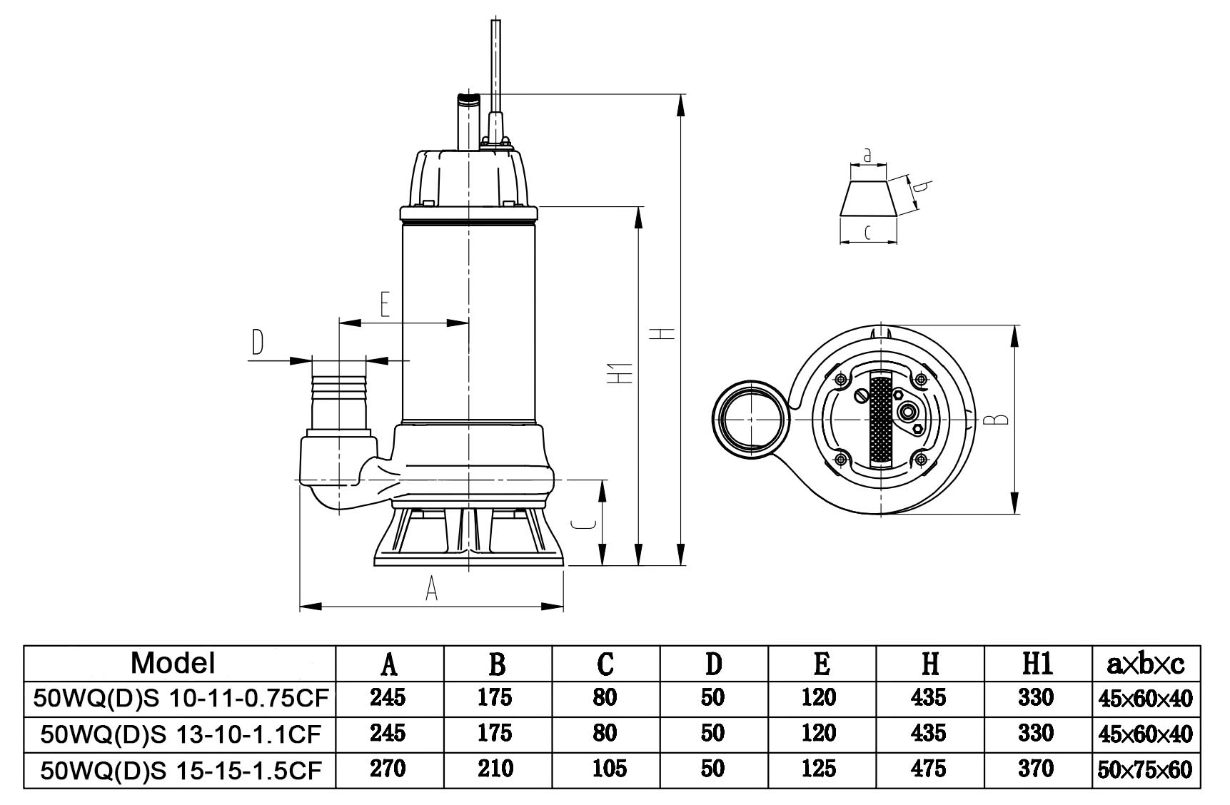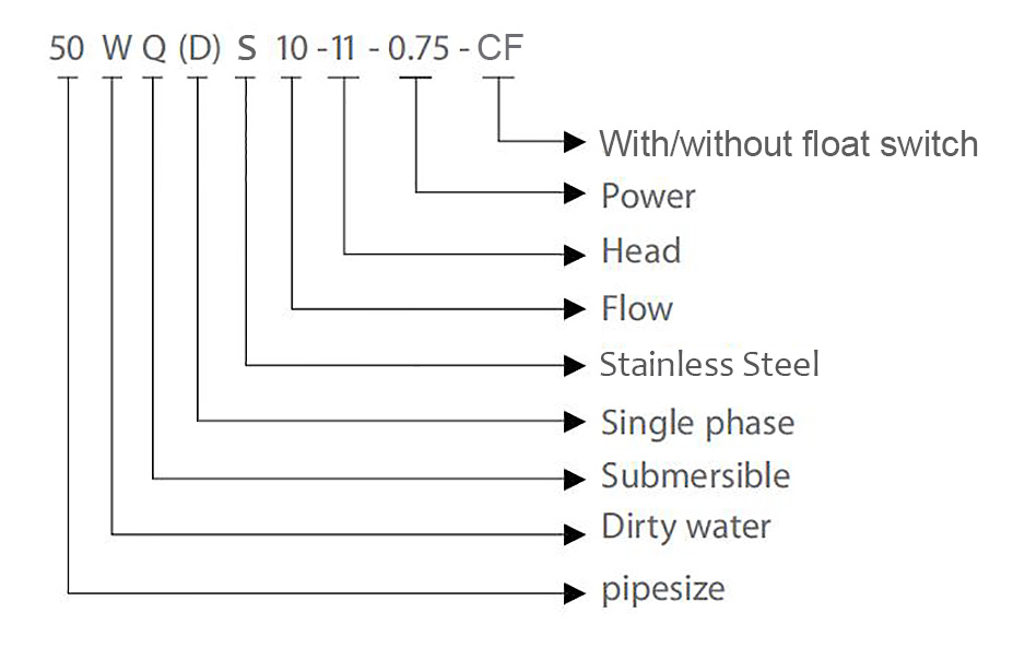 | 50WQ(D)S 13-10-1.1CF | 220/380 | 17 | 16 | 1.1 | 50 |