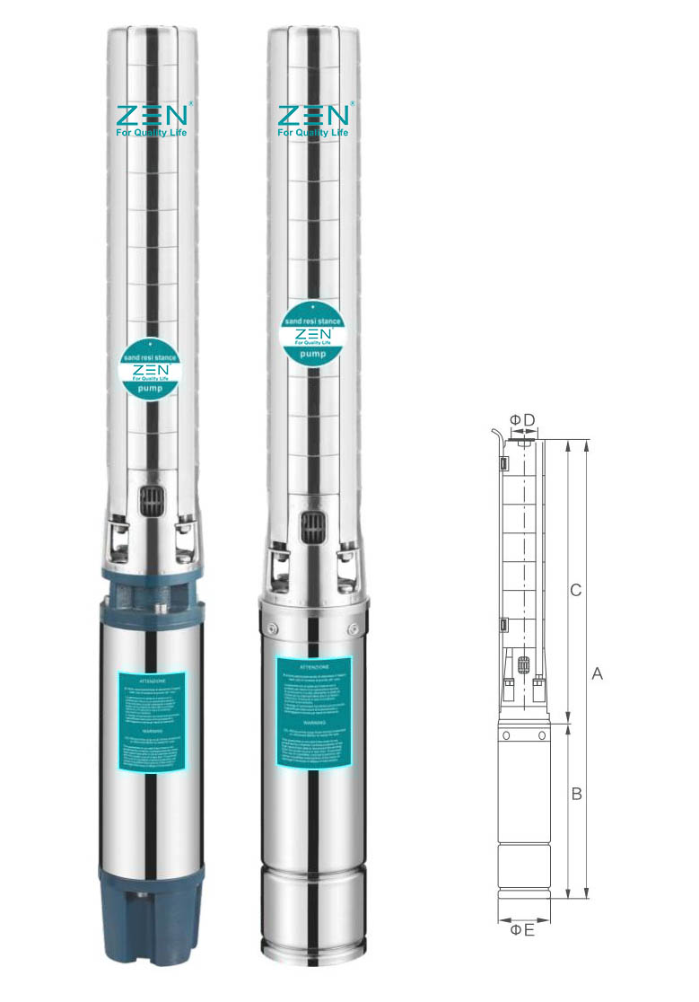 Si busca un suministro de agua confiable para su hogar, riego agrícola o aplicaciones industriales, la bomba sumergible para pozos profundos 6SP17 marca zen es la solución perfecta. Identificador*6SP*6: Diámetro del pozo: 148 mm (6")*SP: acero inoxidable* 17: Capacidad (m³/h)* 05: Escena* 3.0: Potencia del motor (KW)