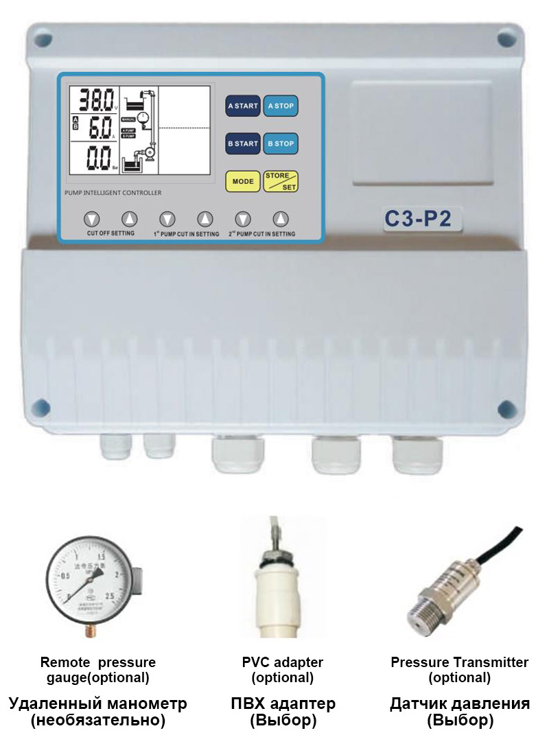 El controlador de bomba dúplex de aumento de presión C-P2 de alta calidad de ZEN Machinery está equipado con las siguientes funciones de control: sonda de electrodo de pulso/interruptor de flotador/contacto eléctrico; manómetro/relé de presión; La pantalla es una pantalla LCD dinámica en inglés; Modo de control manual/automático y funciones de protección completa tanto en modo manual como automático.