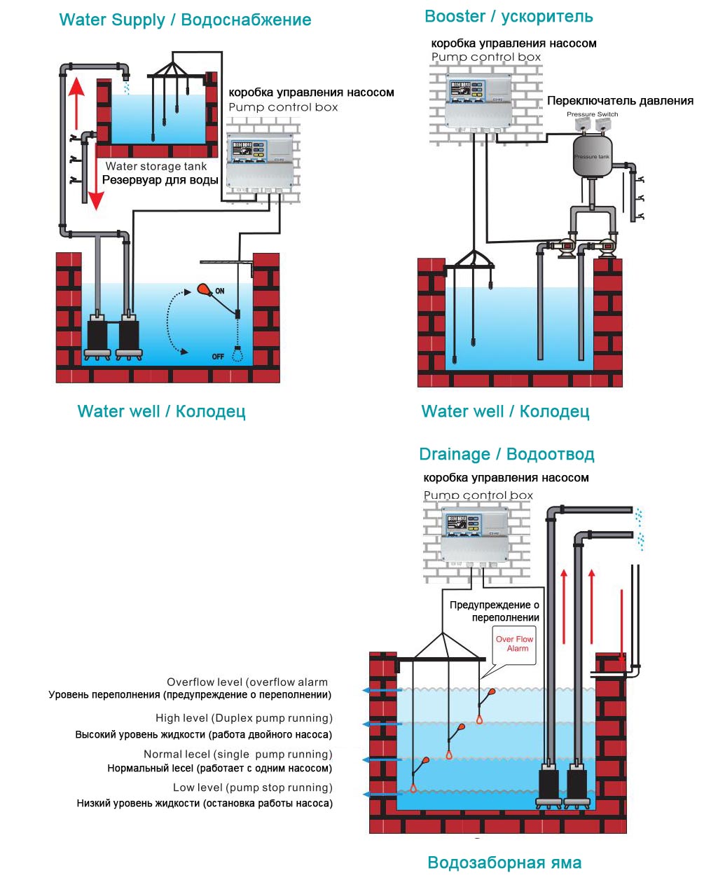 ◆Modo de control: manual/automático, alternancia automática de bombas dobles, conmutación automática de fallas