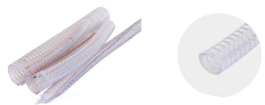 La manguera reforzada con alambre de acero de PVC es un tubo flexible que se utiliza para transportar agua desde una fuente de agua a varios objetos. Es una herramienta esencial para regar plantas, lavar autos, limpiar espacios exteriores y muchas otras tareas interiores y exteriores. Las mangueras de agua suelen estar hechas de materiales duraderos como caucho, PVC o poliuretano, lo que les permite soportar alta presión de agua y un uso frecuente.
