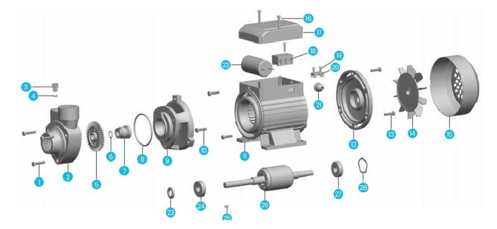 | 1 | Tornillo | 11 | Carcasa con estator bobinado | 21 | Fairleigh |