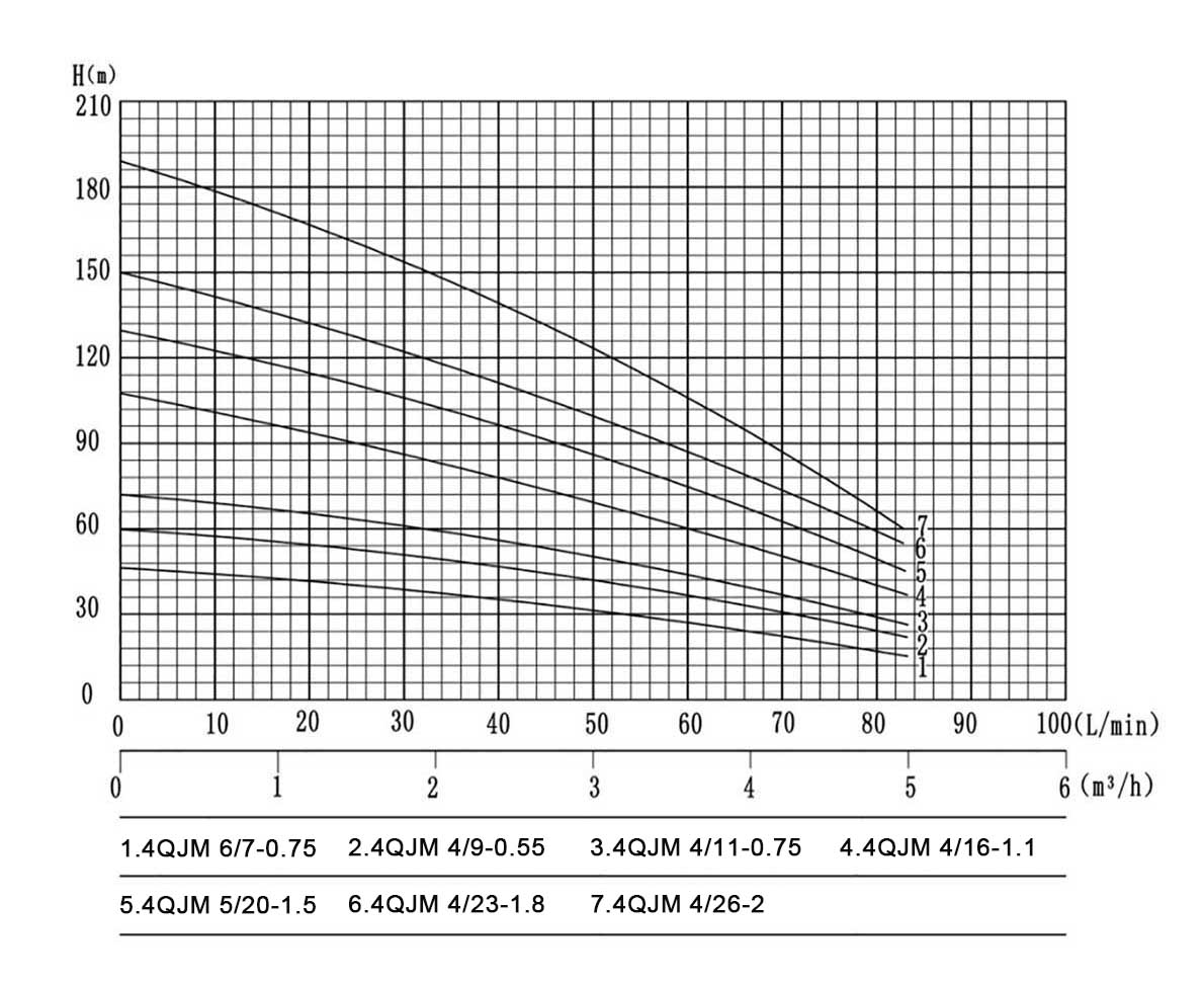 | 4QJM10/7-1.1 | 1.1 | 43 | 15.3 | 2" | H(metro) | 43 | 43 | 40 | 38 | 35 | 32 | 25 | 15 | 4 | 2" | |