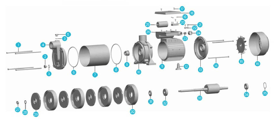| 9 | Sello mecánico | 21 | Sello mecánico | 33 | Rotor | ||||||