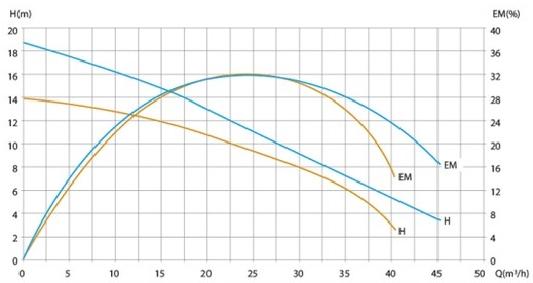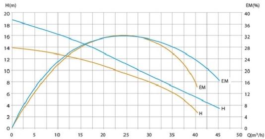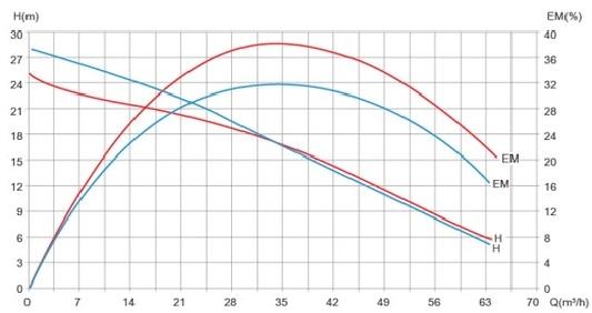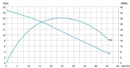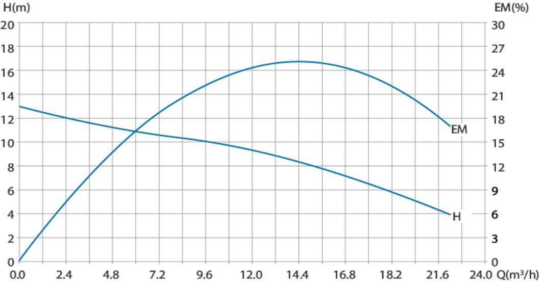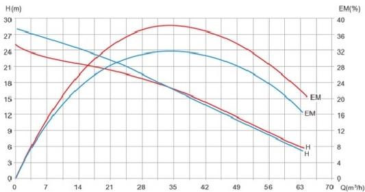 Nota:——potencia de la bomba P2 = 0,75 kW