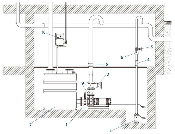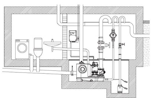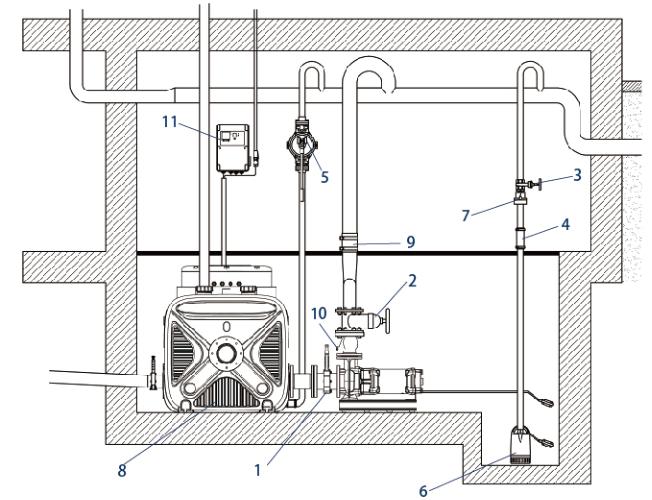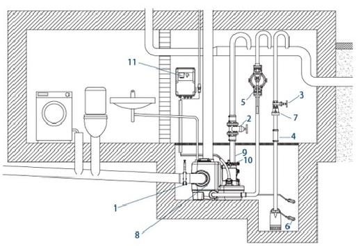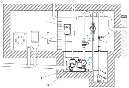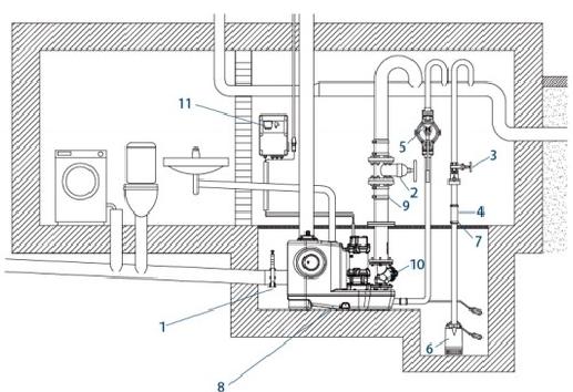 | 7 - válvula de retención | 8 - Unidad de elevación de aguas residuales | 9 - Manguera del amortiguador |