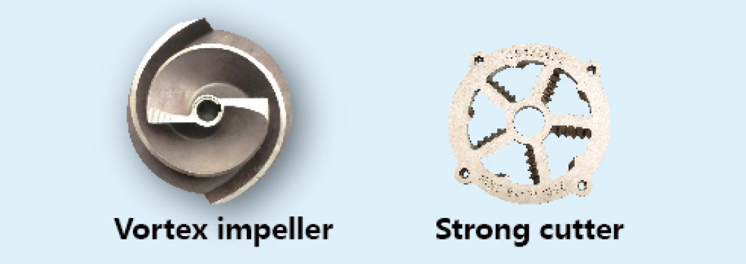 2. El material del impulsor y del anillo de cuchilla es acero inoxidable con alto contenido de cromo 420, dureza HRC49 - 52 y tiene buena resistencia al desgaste.