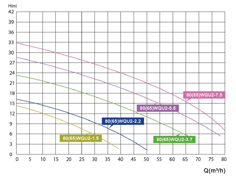 | 80(65)WQU2-3.7 | 3F/380V | 3.7 | 5 | 3"(2,5") | 80(65) | 50 | 40 | 14 | 64 | 23.5 | 57.34 | 68*29*33 |