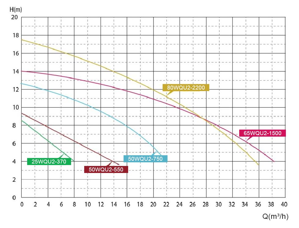 | 25WQU2-370D | 1F/220V | 0.37 | 0.5 | 1"/2" | 25/40 | 15 | 4 | 6 | 8.1 | 8.3 | 10.5 | 43x23×17 |